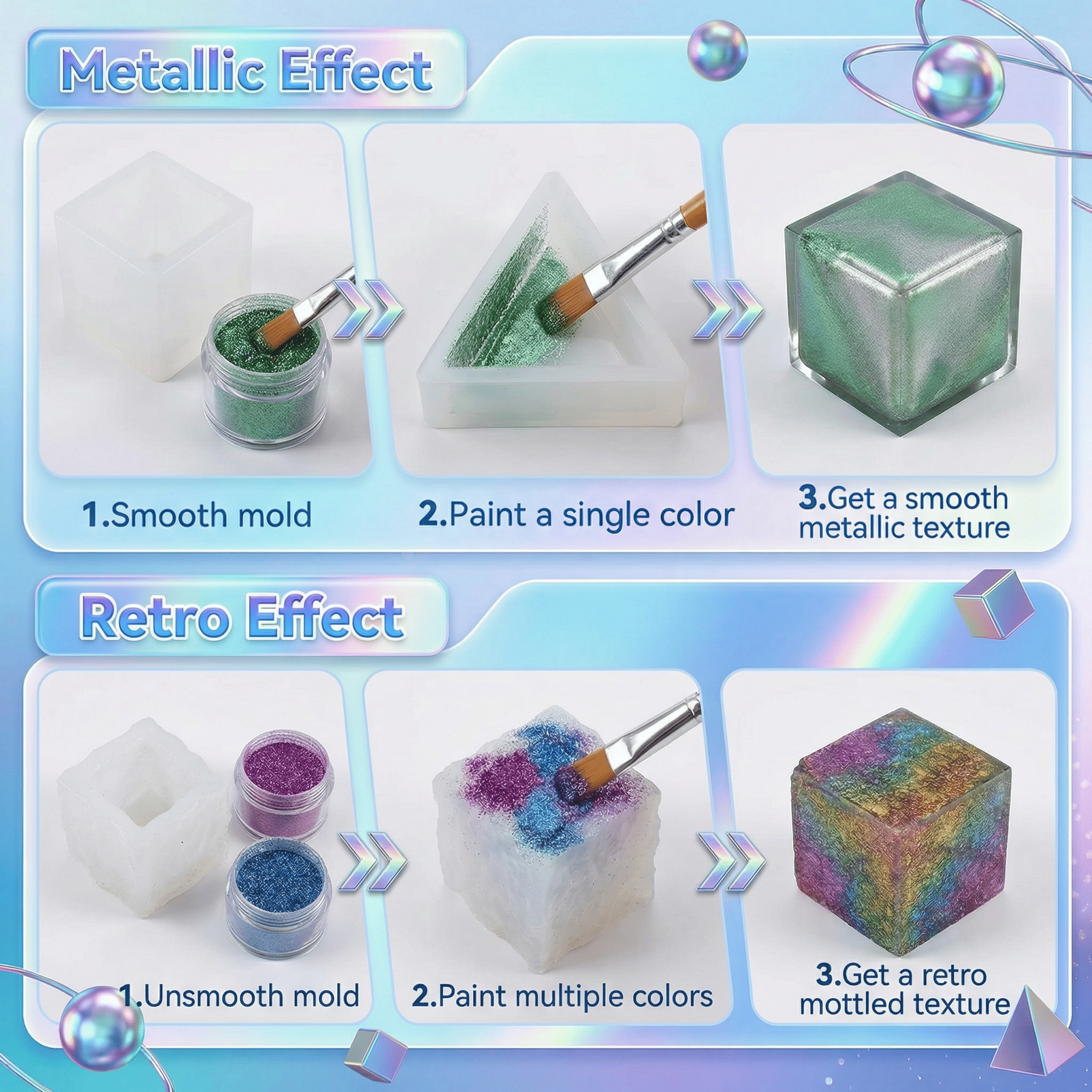 - Resin Art: Create stunning coasters, keychains, jewelry, and decor with swirling, iridescent effects (just mix into resin or paint onto molds for metallic/retro textures!).