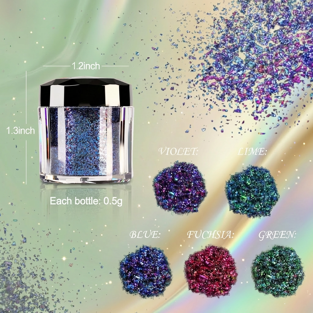 - Material: Non-toxic, skin-safe glitter flakes
