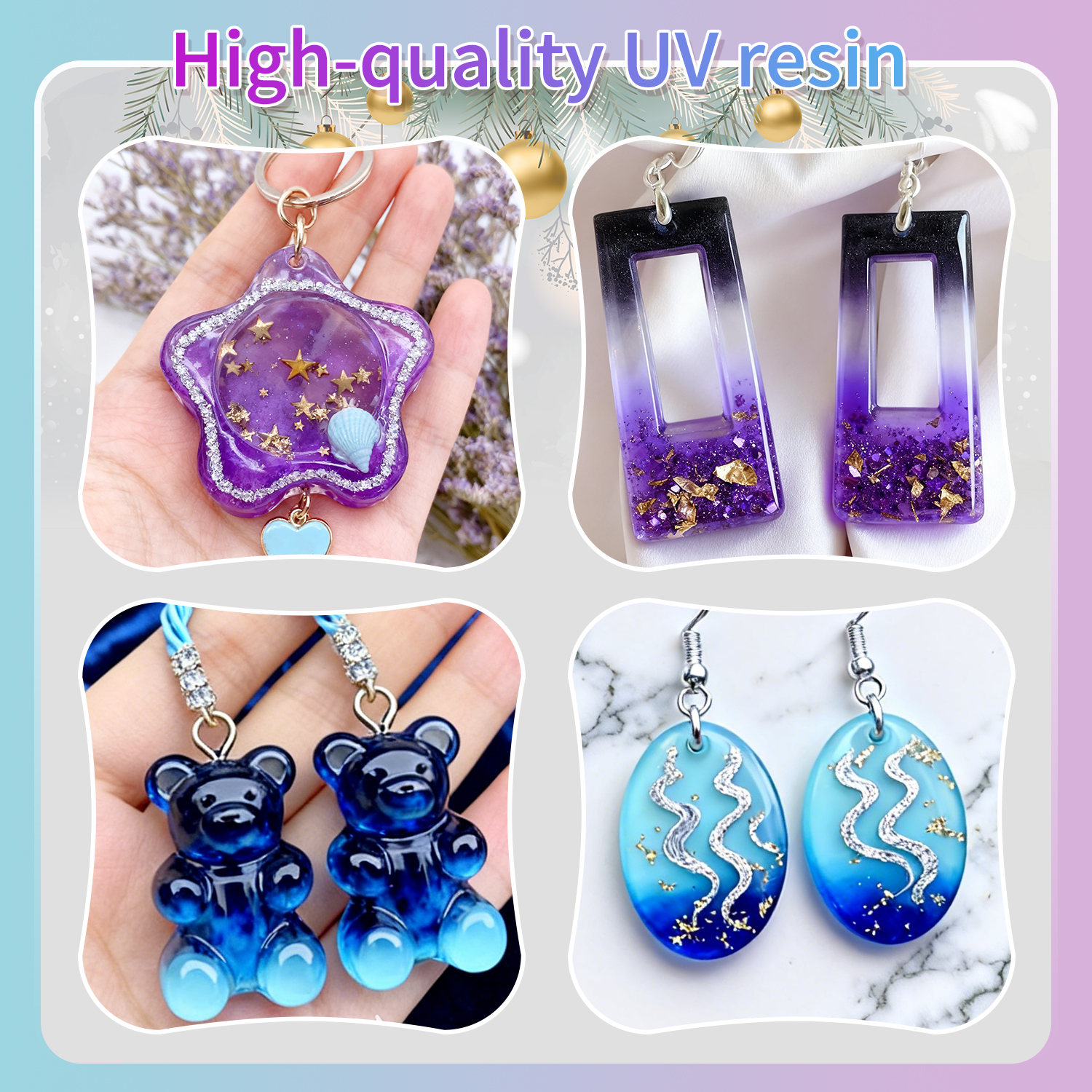 Our high-quality UV resin is formulated for long-lasting clarity, resisting yellowing and fading over time. Your finished jewelry, keychains, and decor will stay bright, clear, and beautiful for years, even with daily wear.