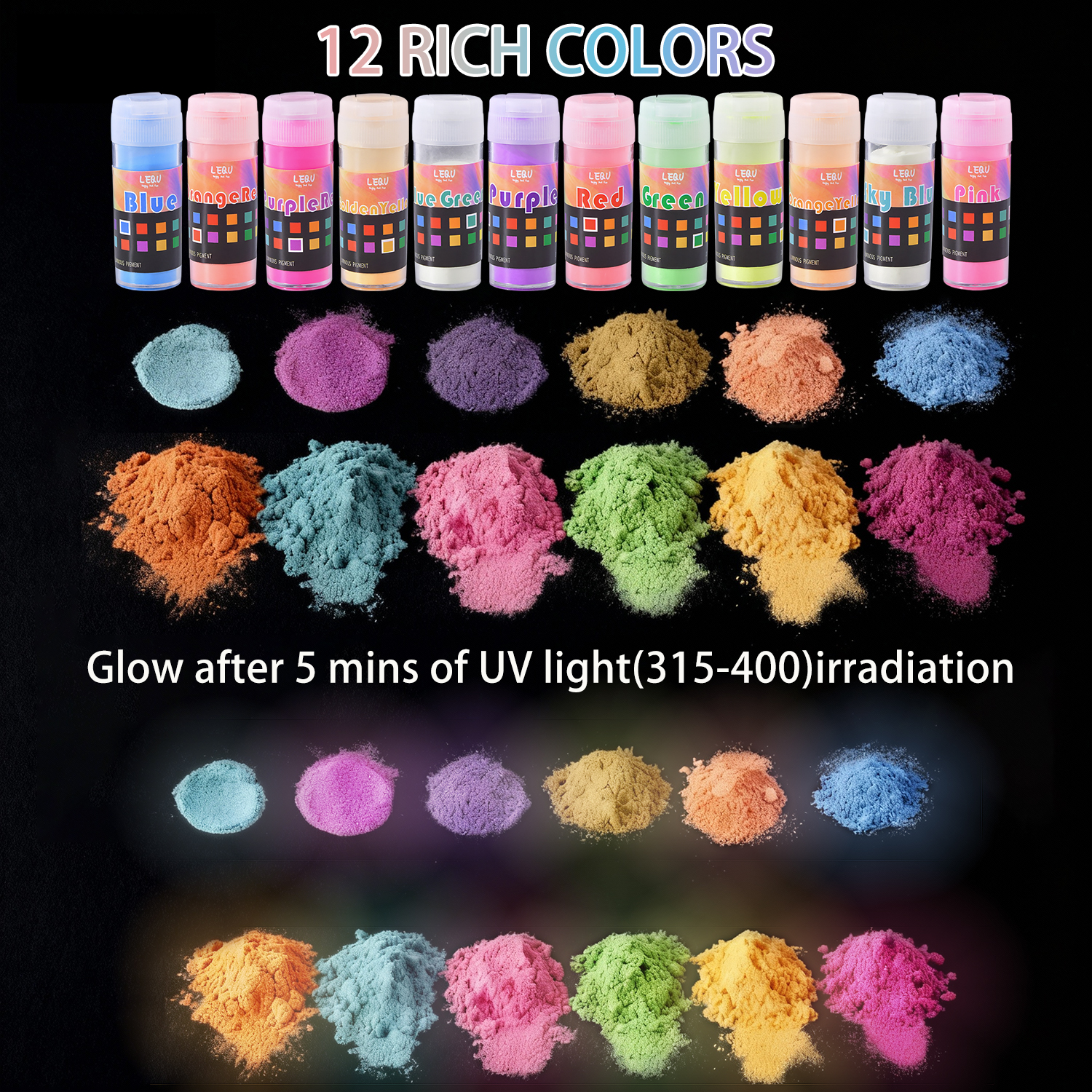 LEQU 12-Color Luminous Pigment Powder: Glow Up Your DIY Creations