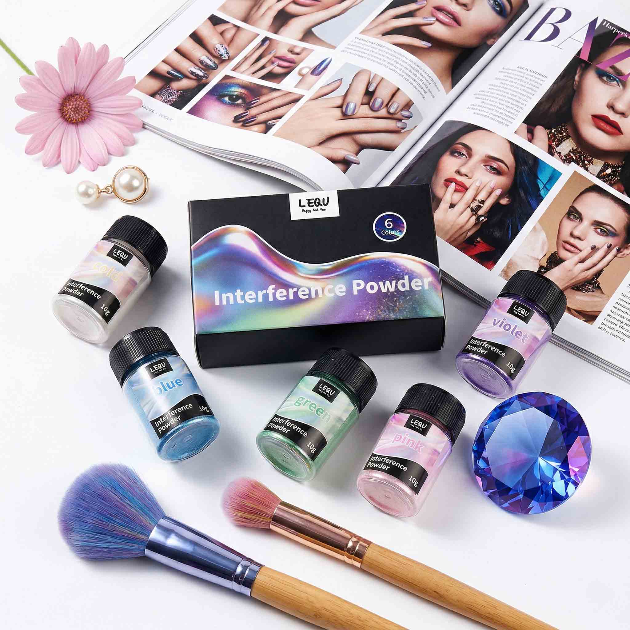 LEQU 6-Color Iridescent Interference Pigment Powder Set